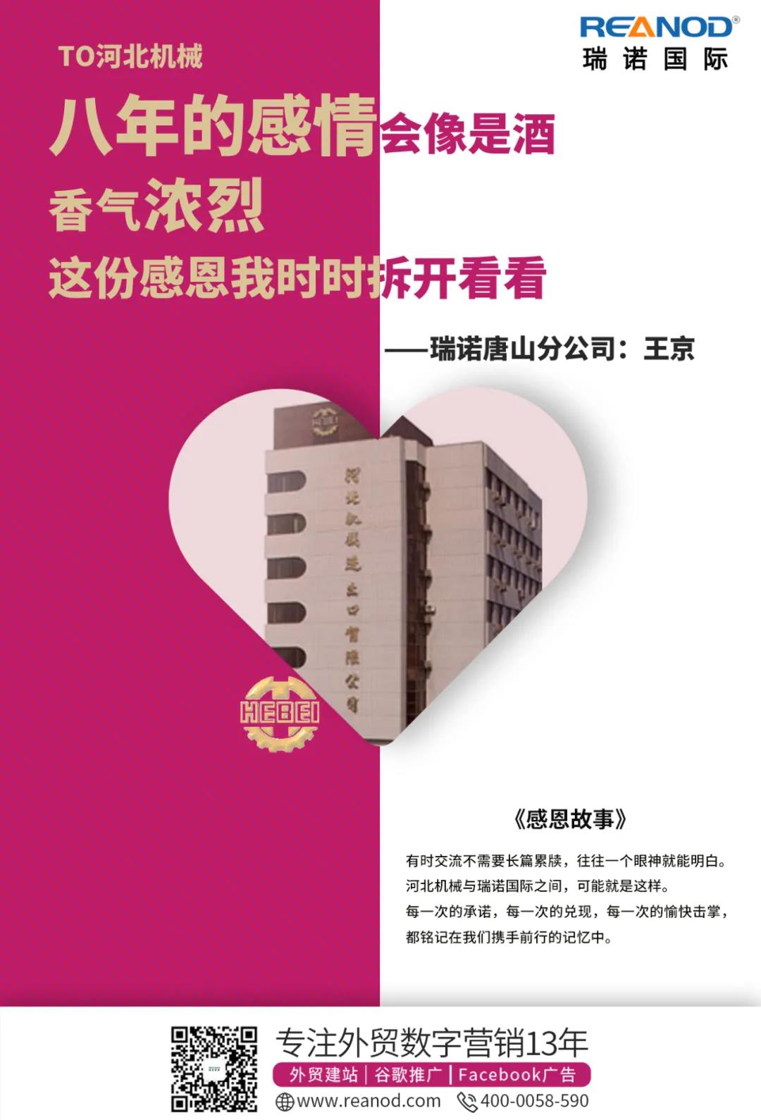 2018年(nian),史必诺首次接触瑞(rui)诺國(guo)際(ji),付之(zhi)以(yi)信(xin)赖,将外贸整郃(he)營(ying)销托付,從(cong)那开始,大(da)傢(jia)并肩同行三年(nian)光阴。